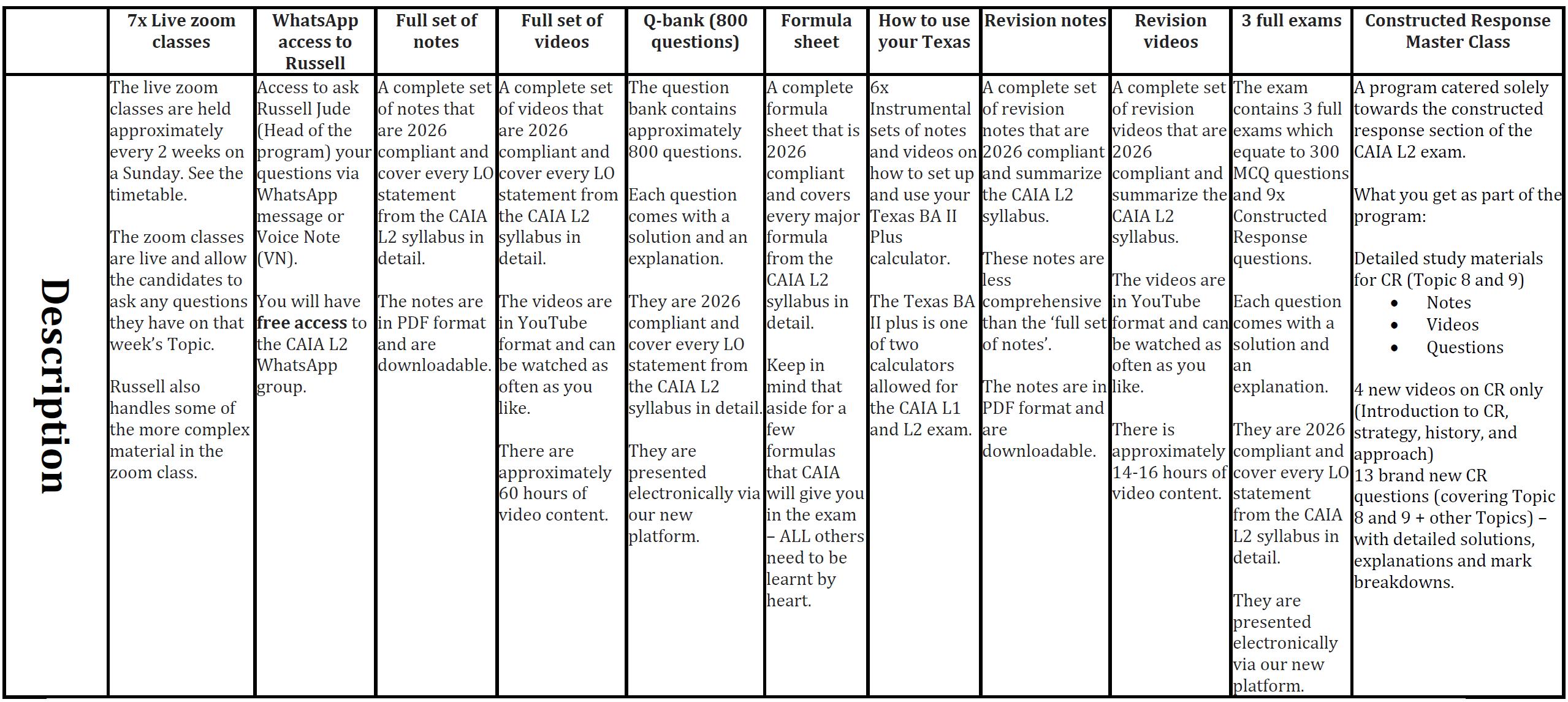 We offer the following options for this course: (See more in the table below)